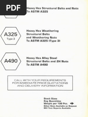If you are working with a325 structural bolts on a regular basis we strongly recommend purchasing a copy of the astm a325 specification from astm international.