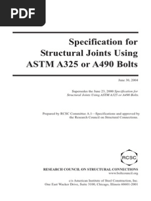 Prepared by rcsc committee a 1 specifications and approved by the research council on structural connections.